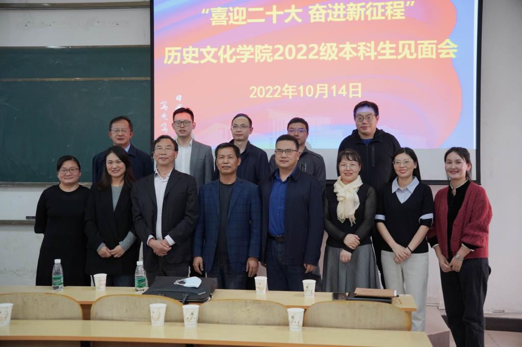 10月14日下午,历史文化学院2022级本科新生见面会于学院B200教室举行,历史文化学院党委书记王义芳、院长黄柏权、副院长雷平、档案系系主任李彩容、教师代表万雄飞和曾育荣、团委书记约麦、2022级各班班主任及196名新生参与本次会议。学院党委副书记郭仿兰主持会议。