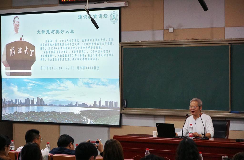 10月25日下午,著名美学家,湖北大学人文社会科学资深教授、博士生导师,武汉市第十四届政协副主席彭富春教授应邀做客湖北大学通识教育论坛,与200余名师生畅谈“大智慧与美好人生”。