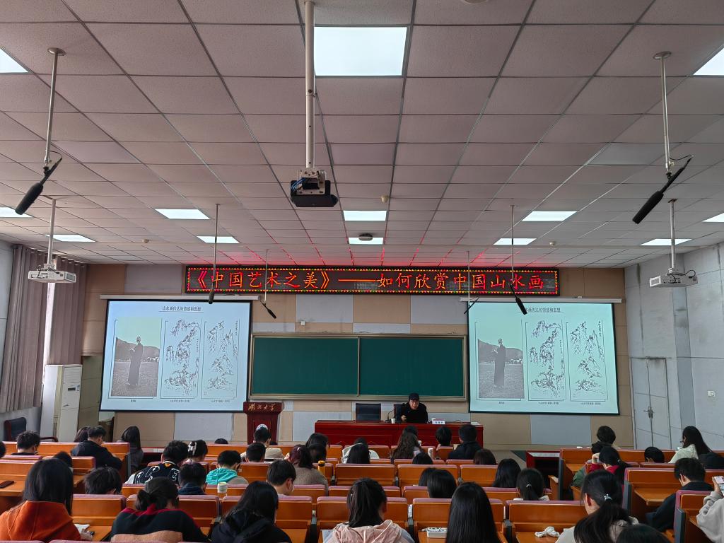 3月16日上午,现任民革中央画院理事、国家一级美术师杨耀洲应邀到湖北大学阳逻校区,讲授本学期通识教育选修课《中国艺术之美》第二讲——“如何欣赏中国山水画”。
