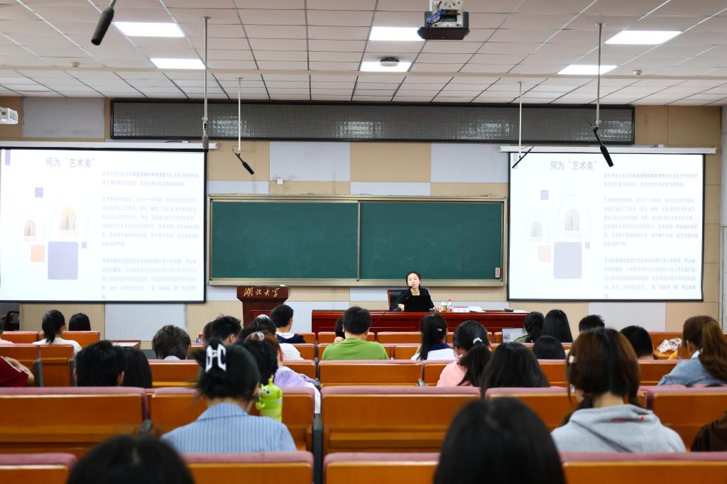 4月13日上午,武汉音乐学院副教授、施坦威荣誉教师、钢琴演奏博士吴超应邀至湖北大学阳逻校区讲授本学期通识教育选修课《中国艺术之美》第五讲——钢琴古典音乐的审美与视听。