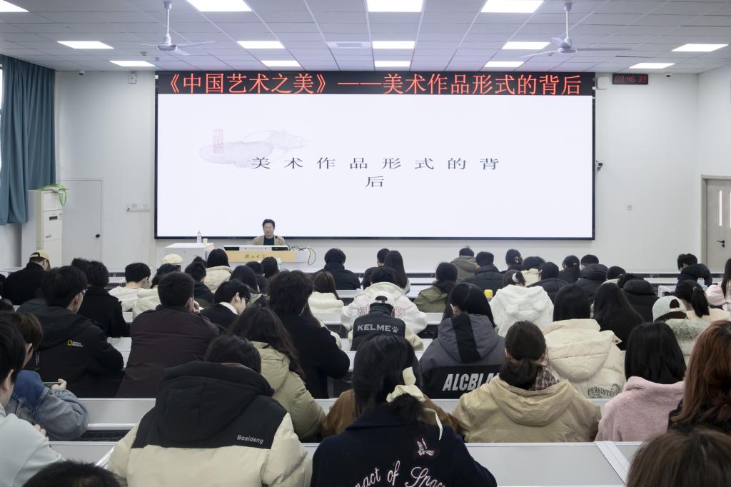 3月15日上午,湖北大学中国画研究所所长谭崇正应邀至我校阳逻校区讲授美育教育选修课《中国艺术之美》第三讲——美术作品形式的背后。
