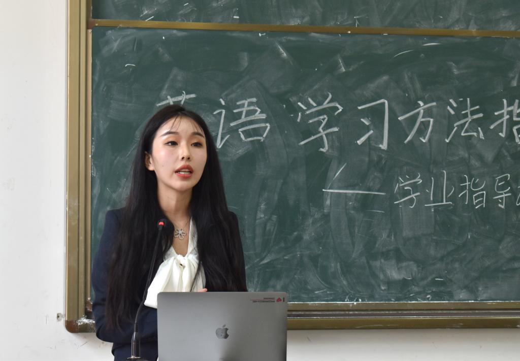 在说到如何去提高自己的听力水平时,她建议以“整体听—逐句听—整体听”的方式来帮助大家提高自己。此外,樊老师指出同学们学习过程中存在的最大问题是阅读量过少。她根据自身的教学经验,鼓励同学们通过选择兴趣模块进行由易到难的阅读。她还对同学们说:“你们要多读书,扩大自己的阅读量,增加自己的词汇量”。