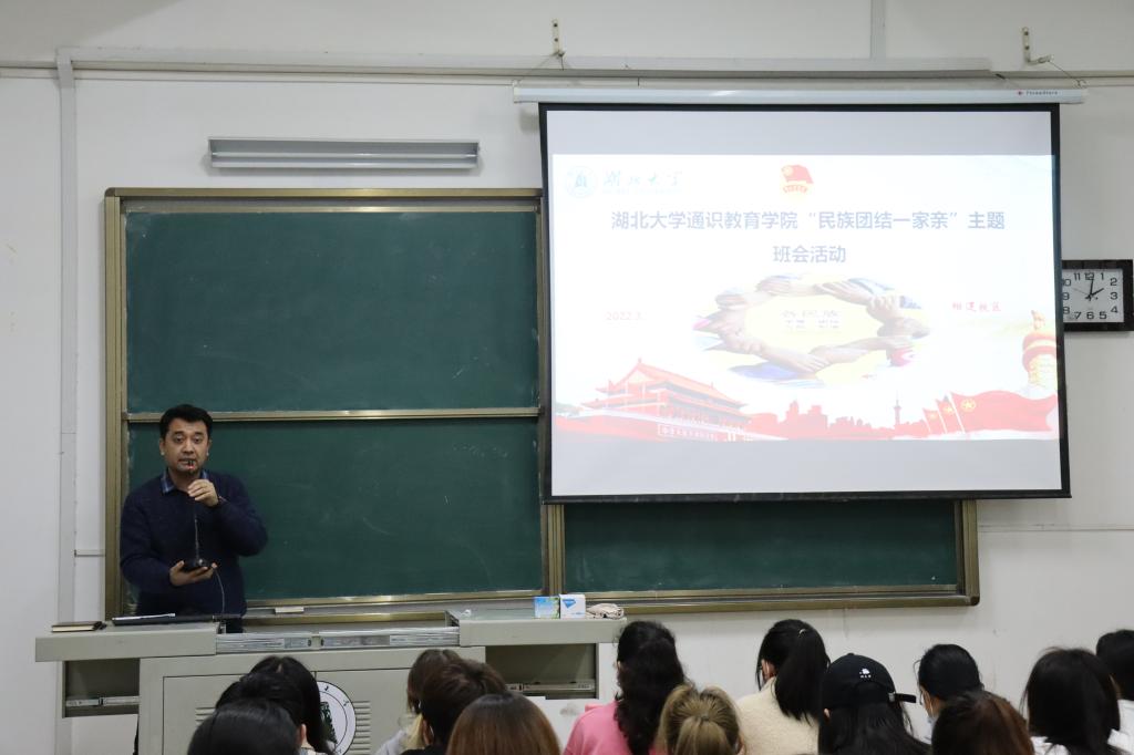 3月30日,通识教育学院开展以“民族团结一家亲”为主题的班会活动。通识教育学院党委副书记韩凯,学工部少数民族辅导员艾麦提江参加会议,逾90名学生到会。