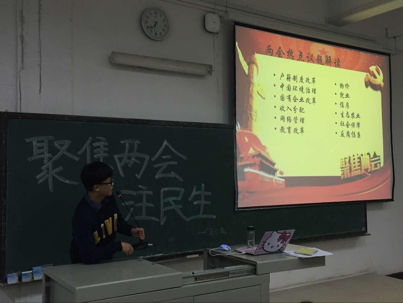 正心苑法学、公共管理等专业的“聚焦两会”活动由团支部书记魏征芝组织。该苑精心制作了PPT,首先向同学们介绍了两会的基本知识,接着对户籍制度改革、中国环境治理、国有企业改革、收入分配、网络管理、教育改革等热点问题进行了较为深刻的解读和剖析。该苑同学结合本专业特点,将国家政策、人才需要与自身未来发展和职业规划相结合,紧密联系,把握我国法制发展的前进方向,争做社会需要的人才。