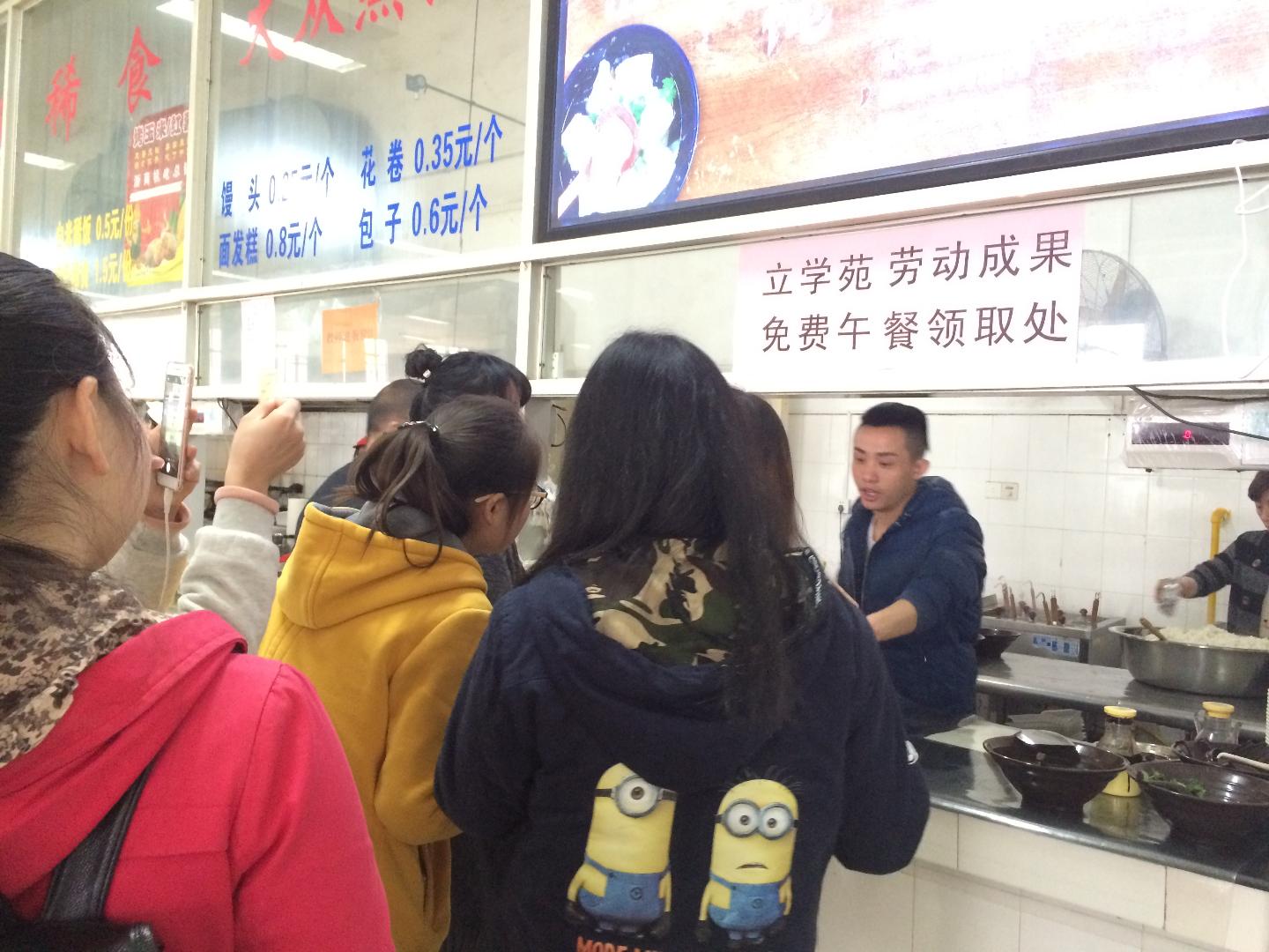 中午11时20分,下课后的学生陆陆续续地来到了食堂。立学苑195人来到派票处领取了就餐券,享用了免费午餐。“很感谢教育学专业和心理学专业同学的辛勤付出和劳动,让我们享用到了这个免费又美味的午餐,很希望学校多多开展这样的活动。”教育技术学专业的张小雪说道。