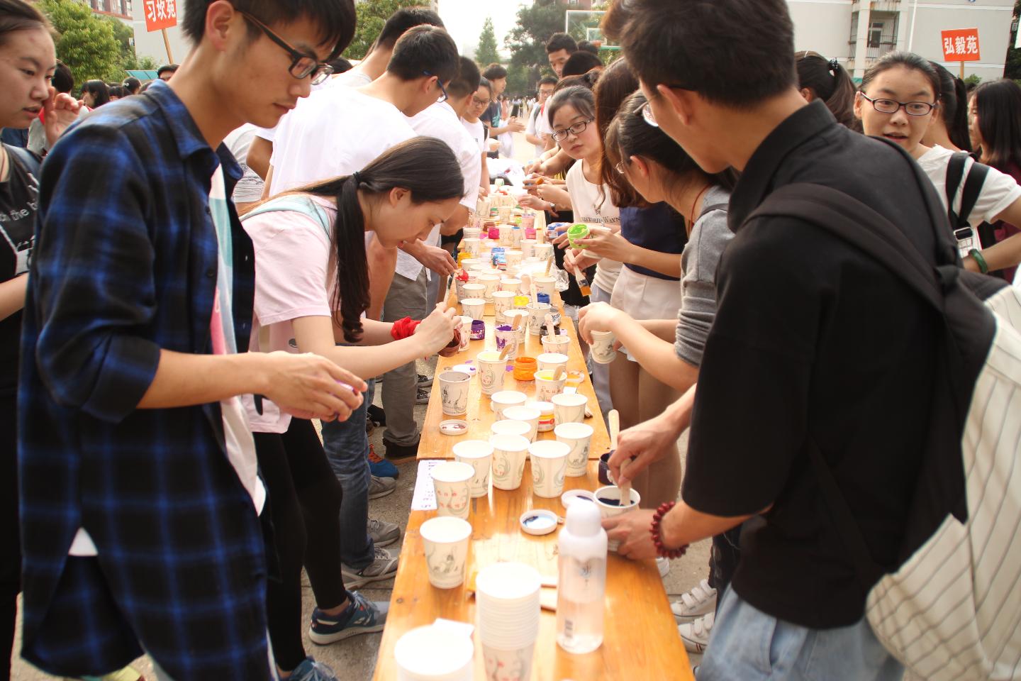 “大家需要颜料和画笔的自己到服务台领取啊!”下课铃声刚落,篮球场边已经围满人。5月17日晚五点,由湖北大学创新创业俱乐部承办的“把你留在最美的通识里”手绘文化衫活动在篮球场拉开帷幕。各习苑学生都积极前往,为自己留下一份“通识记忆”。