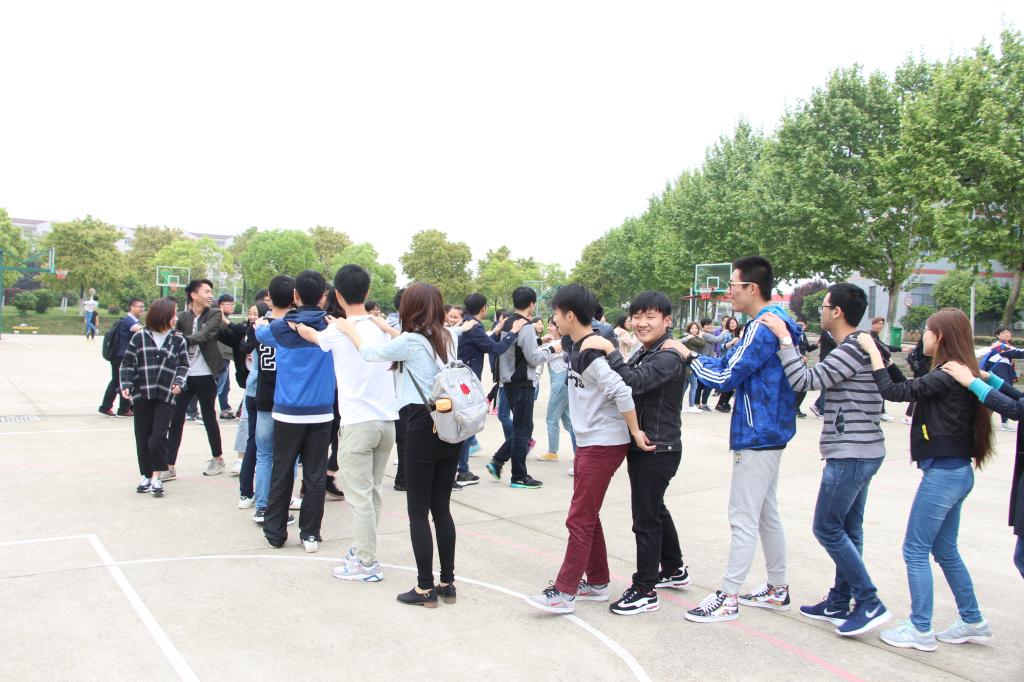 开幕式上,赵翠荣老师随机把学生分为为内外两圈,让内外圈学生分别往顺逆时针方向走动。在音乐《相逢是首歌》暂停三次中,内外圈同学依次完成眼神交流示意、握手介绍自己、相互击掌三个步骤。在这个环节里,参与者们都开心地随着音乐摇摆起来,逐渐打破最初的沉寂和身边同学交流甚至嬉戏起来。对此,赵翠荣表示达到了自己的理想效果。她说:“这个环节实际上是模拟人际交往的过程。在音乐的感染下,同学们通过眼神交流到肢体接触慢慢敞开心扉,不自觉地克服人际交往的障碍。”
