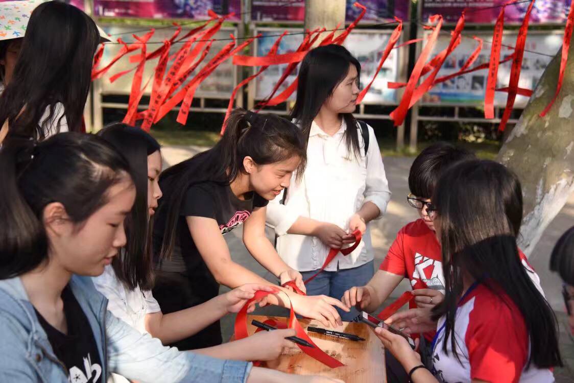 活动当天,现场气氛十分热闹,学生的兴致都非常高。活动准备的570条红丝带全部用完。“母亲节来临,祝您身体健康”、“希望您每天开心,不再为我操心”各种美好的话语与期待都寄托在了红丝带上。部分学生选择亲手将写上祝福的红丝带系在事先准备好的尼龙绳上,而还有部分学生则将丝带放在盒子里由工作人员代挂。
