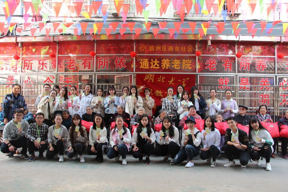 10月28日,湖北大学通识教育学院志愿者协会的成员们在重阳节当天前往新洲区商东社区通达养老院看望老人,传递温暖。