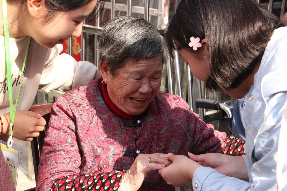 养老院的杨慧银奶奶,今年已经83岁高龄。但是老人家精神健硕、红光满面,让人感觉格外的健康与慈祥。奶奶在通达养老院生活两年时间了,尽管儿女们都出国深造,她也未感到孤单。她说“蔡院长对老人们就像对待自己的父母,照顾得十分周到。自己没事就与养老院的老姐妹们聊聊天,过的十分惬意。今天重阳节来了这么多大学生,自己更是感到充满了活力!”