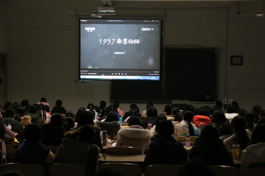 活动伊始,主持人以一段低沉的朗诵呼吁大家勿忘国耻,缅怀同胞。随后,全体肃立,进行了长达一分钟的默哀以示悼念。在庄严肃穆的气氛中,屏幕上开始放映纪录片《一九三七南京纪念》。全片以张纯如的视角还原南京大屠杀的事实,讲述了她撰写《南京暴行:被遗忘的大屠杀》四处奔波搜集资料的经历以及为让南京大屠杀暴行为世界所知做出的抗争与牺牲。在场同学表情凝重,在观影结束后纷纷表示要“勿忘历史,吾辈自强”。