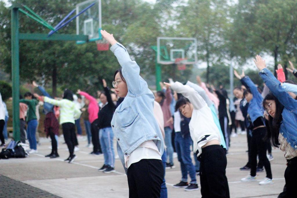 10月15日清晨六点,通识教育学院大一新生在各个地点集合整队,开始了他们大学生涯中第一次广播体操。