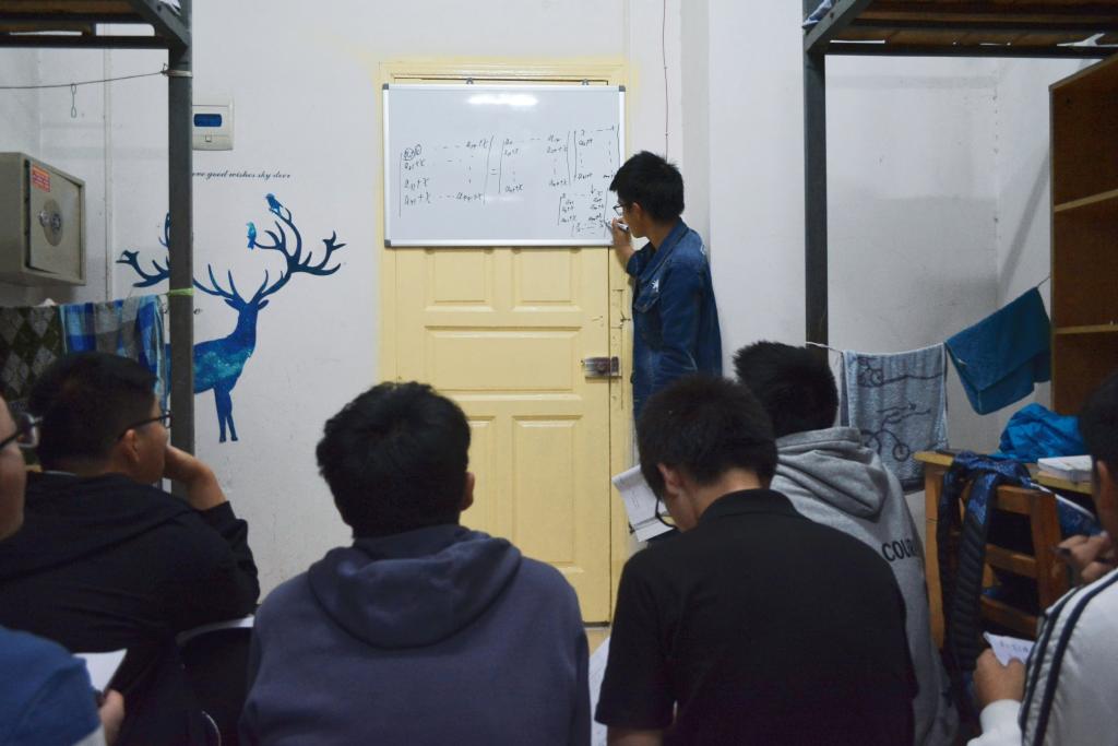 10月29日晚,湖北大学通识教育学院思睿苑“寝室小课堂”正式开课。当天晚自习刚下,来自思睿苑的十四名女生就把三栋619寝室挤得满满当当 。“你们有什么不懂的地方吗?”来自应用统计学专业1801班的讲课志愿者齐欣钰和涂心怡话音刚落,大家就争相提出了许多问题。 “这里通过保不等式性得出…”“不对呀!这里是保号性。”讲课途中,学生们多次进行热烈讨论,直到查寝时她们才陆续回到寝室。