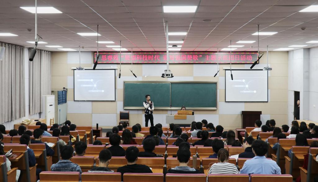 3月17号晚,思睿苑团总支联合教育学1801班团支部开展以“展望科技时代,谱写强国赞歌”为主题的示范团日活动,设有情景剧,问答、绘出“中国梦”和全员合唱的环节。