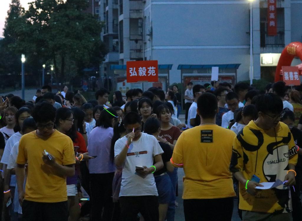 每个习苑按照人数比例各组建了一支荧光夜跑队,由主领跑者和副领跑者分别带队进行游戏。习苑代表队依次按照顺序从拱门出发,每5分钟一组。其中正心苑的学生们为这次活动特意准备了荧光苑牌,部分女生头上带着荧光发箍,成为十三个习苑里面最靓丽的风景。
