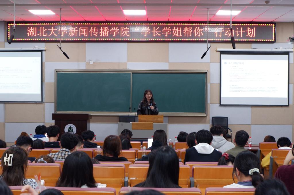 4日晚,崇善苑朋辈交流活动举行。学长学姐们用自己的亲身经历,向崇善苑的学生们证明了唯有努力奋斗,才能在大学闯出一番天地。2017级广告学专业的张映雪和2017级新闻学专业的惠一蘅分享了自己的保研经验和学习心得,他们分别获得了中央民族大学,中国人民大学的保研资格。惠一蘅从课堂学习、课后复习、科研实践及实习等方面向学生们介绍了大学的学习生活,并强调了制定学习计划和学好大学英语的重要性。社团干部杨梦菲,以及学生骨干许若谷向大家分享了自己的学生干部经验。杨梦菲说,阳逻校区是一个很适合自我沉淀,自我提升的地方。同学们要在大一多学一些东西,今后的许多成绩都将源于大一的基础。许若谷认为,虽然每一天都非常累,但是在完成每一件事情的过程中,自己的能力都得到了提升。