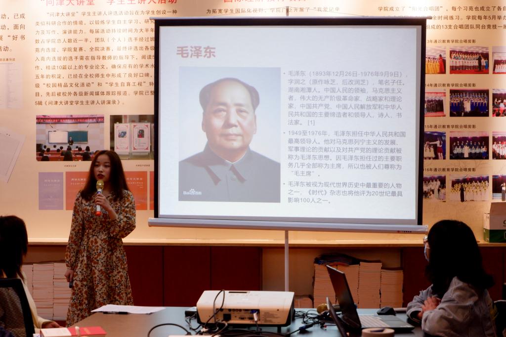 本次读书分享会的分享人分别是笃行苑的刘梦璇、龙怡欢、周亦茜,思齐苑的崔欣蕾、严成骏,正心苑的龚举,崇善苑的陈燕菲、张盛华,以及习坎苑的刘浩乐、周楚芸。分享书目有《林海雪原》《青春之歌》《保卫延安》等革命小说,有《觅渡》《西行漫记》《中国精神读本》等革命历史记录,还有《毛泽东选集》《毛泽东诗词鉴赏》等伟人的思想瑰宝。