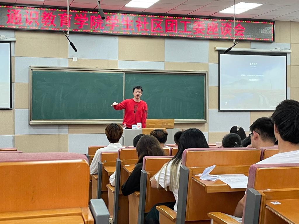 5月18日,通识教育学院举办学生社区团工委座谈会,院党委副书记韩凯、团委书记吴玉莲、社区团工委书记黎凤莲及学生社区团工委全体成员参加会议。