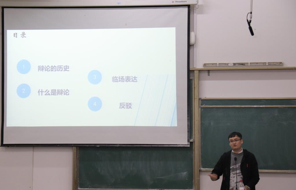 魏祚麟以自身经历展开讲解,活跃了讲座气氛,在座学生都侧耳以听。“目的决定手段。演讲是表达你的观点,吵架是噎住对方,而辩论是说服中立的第三方……”魏祚麟用短短几句话就阐明了辩论与演讲、吵架的区别,向大家展示了辩论的独特之处。他向学生们简要介绍了辩论的发展背景,并穿插一些经典的辩论比赛来辅助学生理解一些专业名词,以趣味性的语言引导学生们去了解并学习辩论。