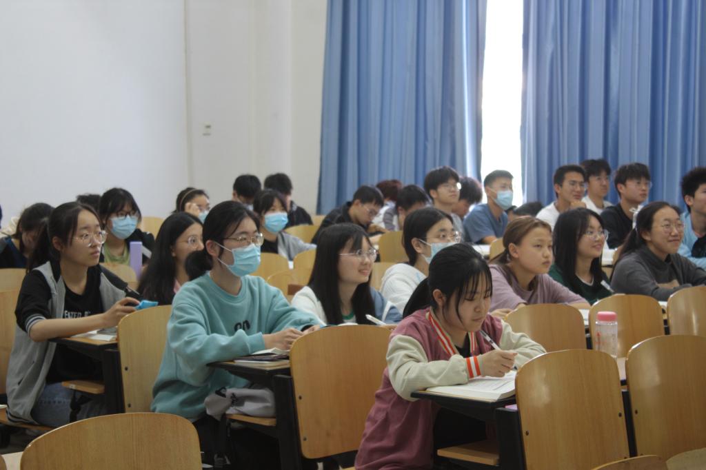 立学苑辅导员黄河悄悄从后门进入到B307教室,与教育技术学(师范类)2101班和教育学2101班的学生们同上普通心理学一课。学生们全神贯注听着课,全然不知黄河老师正在后排注视着他们。后排同学发现黄河老师坐在身后时只是相视一笑,又立刻回到学习状态。教育学专业的王慕莹在课后提到,黄河老师经常会来检查学生们的听课情况,有时还会在教室后方听一段课,拍照记录学生们的学习状态。她认为辅导员对课堂的随机检查能够起到监督作用,促使自己提高的听课状态,班级的学习氛围也变得更浓烈。