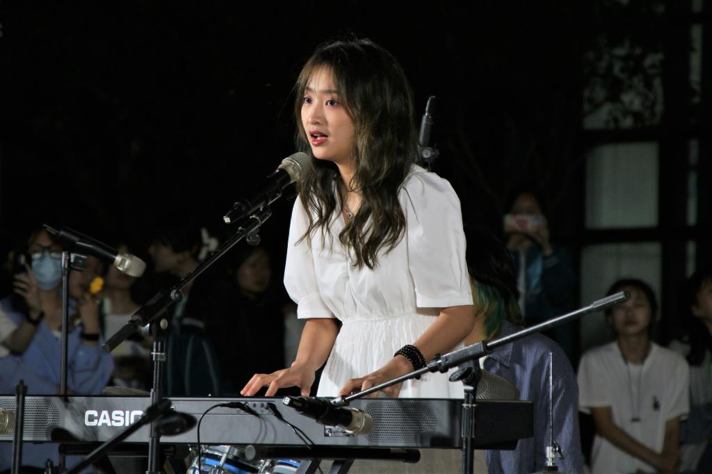 在歌曲《Skinny Love》结束后,由我院iNode乐队带来的《夏日漱石》和《爱在夏天》将全场的气氛推向高潮。iNode乐队的贝斯手余骄杨说:“夏天马上就要来了,我们想用这两首歌唤醒大家关于夏日的美好记忆,同时给音乐节增添‘夏夜晚风’的浪漫氛围。”
