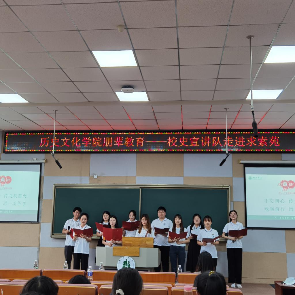 校史宣讲队以教育救国而建立的湖北省立乡村师范学院为起点,从筚路蓝缕初创奠基、艰难求索弦歌不辍、继往开来续谱华章等方面进行宣讲,呈现了湖北大学基于国情、立足省情、服务湖北、面向全国、办出特色的九十载波澜历史进程。校史宣讲队的讲解使同学们逐步了解到往昔岁月的艰苦,先辈们的不易并积极引导同学们珍惜当下,在良好的学习环境和和谐的教学氛围中锐意进取,不断提升自己的综合素质。
