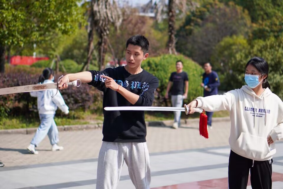“我之前没有了解过武术,今天和同学一起练习时,虽然手很酸但是非常有趣,我现在已经有加入武术协会的意愿了。”2022级工商管理专业学生朱赛在亲身体验了武术教学后说。活动最后,2022级体育教育专业学生李嫒表示,他自己已经练了十二年的武术,希望自己可以帮助武术教育走进校园,同时能够成为传播传统武术文化的一份子。校武术队成员朱韩添说:“只要同学们想要练习武术,我一定尽全力帮助。”