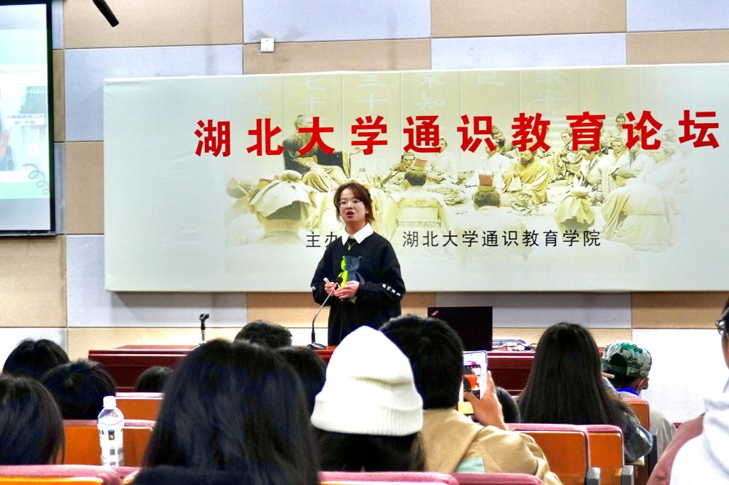 随后,2021级历史(师范)专业的蔡依明分享了她的经验。她提出:“‘问津大讲堂’就是以论文加演讲的形式模拟科研,是一次提升自己搜集和阅读文献、制作PPT、撰写论文等技能的好机会。”她认为,选题的时候要关注现实生活中的热点话题,从小切口深挖,做到选题的具体化。同时,她还向到场的同学们讲解了正确的论文格式,分享了如何阅读整理该领域权威期刊等一些实用的小技巧。