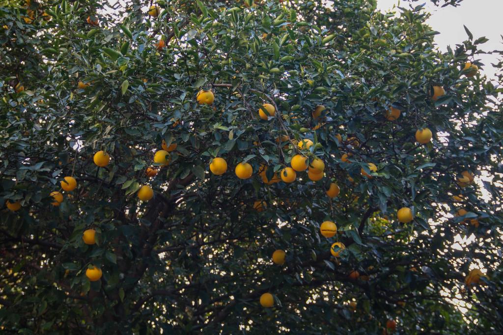 眼见原本挂满黄橙子的枝头只剩满眼的绿,学生们便将梯子移动到另一边,继续采摘。这次女生也不甘示弱,她们一步一步爬上梯子,拉下树枝、抓住橙子、用力一扯,一个又一个黄橙子落在掌心。在一声声欢呼中,女生们也体验到了“摘橙之乐”。夕阳的余晖中,习坎楼小院里满树的橙子一个个落下,学生们脸上的笑容越扬越高。