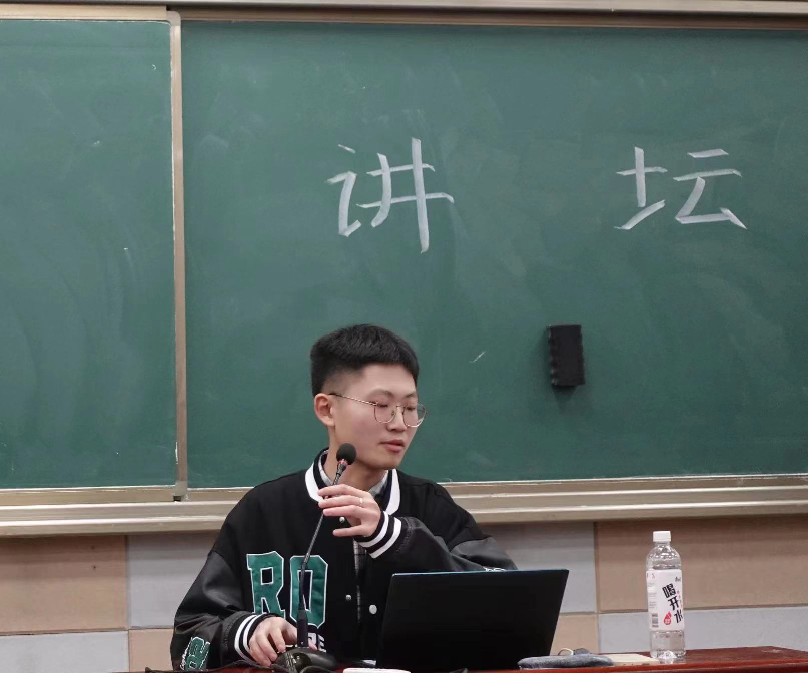 在徐忠圻的分享结束后,由吕天策为大家详细介绍楚才学院。他分享到:湖北大学楚才学院是湖北大学进行教育教学改革和培养拔尖创新人才的试点基地。在楚才学院中有广阔的学习交流机会和平台,优秀学子拥有在大三前往国内外名校访学交流的机会,在社会实践方面,拥有连续两年的校级优秀团队,可提供相关指导,在科创竞赛方面,可邀请各类竞赛的指导教师及获奖团队进行联络指导。在学术交流方面,不同学科之间的交叉融合以及思想的碰撞迸发无限可能。