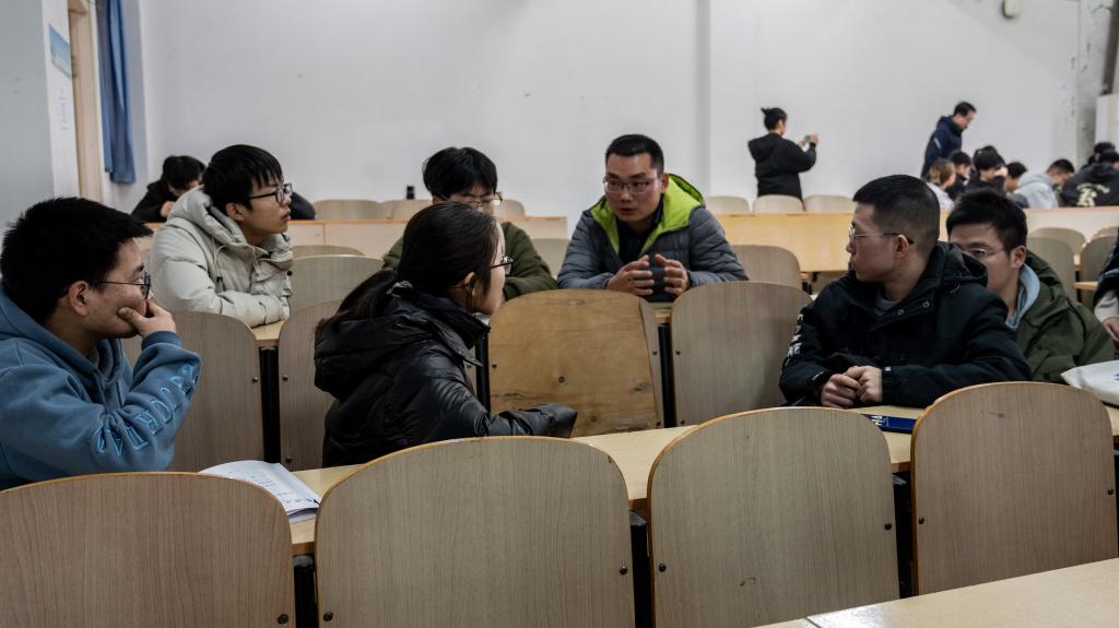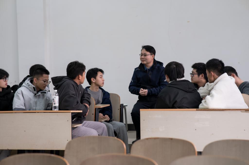 在简短的开场之后,导师各自“认领”自己的学生,与学生们面对面而坐,从自我介绍开始,展开对彼此的了解。在王文峰教授的小组里,被谈论地最多的问题,是学生未来专业分流与考研。王文峰说:“你们现在最重要的,就是要把基础打好,不断学习,不断进步,然后结合自己的情况,进一步考虑不久后的专业分流和未来的深造问题。”