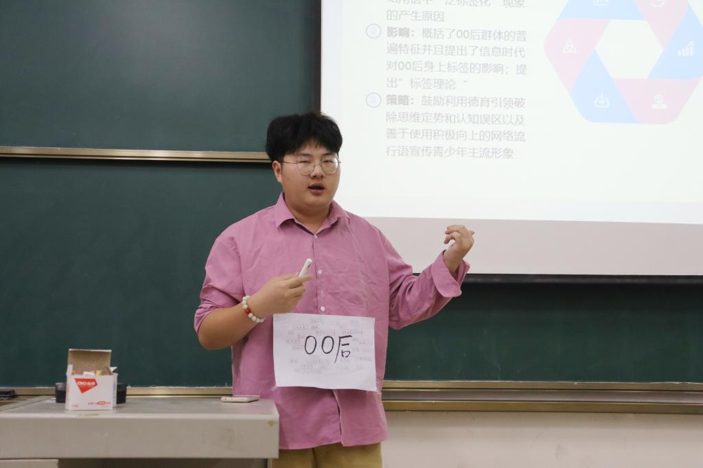 主讲人们结合自己小组制作的PPT,围绕各自论文内容轮流进行了时限10分钟的主题演讲。从新媒体时代大学生心理健康状况到后疫情时代大学生学习变化情况,从高校寝室文化建设到高校思政教育探索,从我国通识教育的起源到优秀传统文化的传承,选手们密切关注高校建设和社会热点,做到了心怀学校、与时俱进。