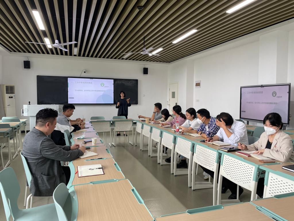 最后,高老师与在场辅导员进行了交流讨论,经过认真的学习与交流,辅导员们对学生心理健康工作有了更深层次的认识,也进一步提高了辅导员的心理健康教育能力和心理问题的应对处置能力,为未来持续改善学生身心健康及提升学生日常管理服务水平注入了新的活力。