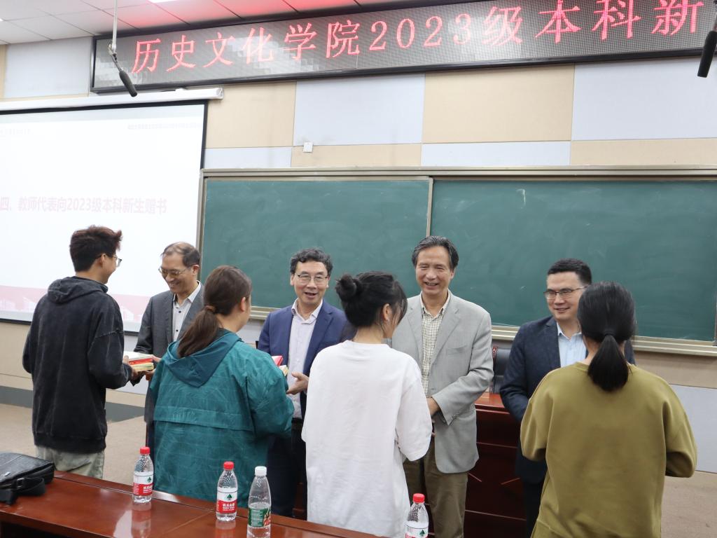 随后,教师代表向4名新生代表赠送了专业书籍,并与全体新生合影留念。会议结束后,文化遗产学学生曹馨艺感慨道:“此次新生见面会丰富了我对于文化遗产学的认知,在今后的学习生活中我会加倍努力,全面提升自我能力,在专业学习中开创出属于自己的天地。”