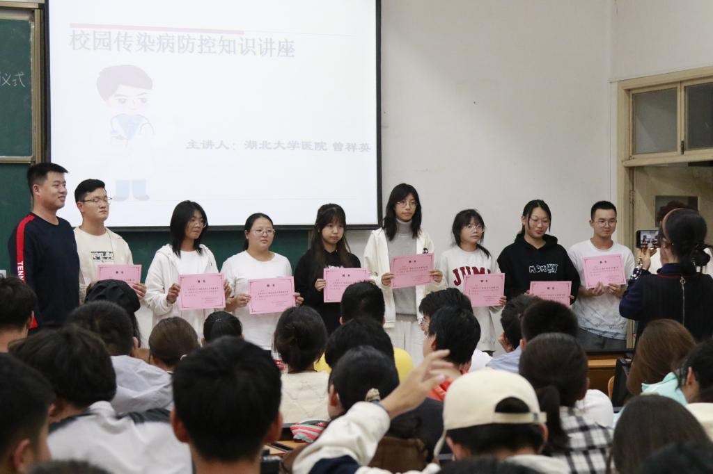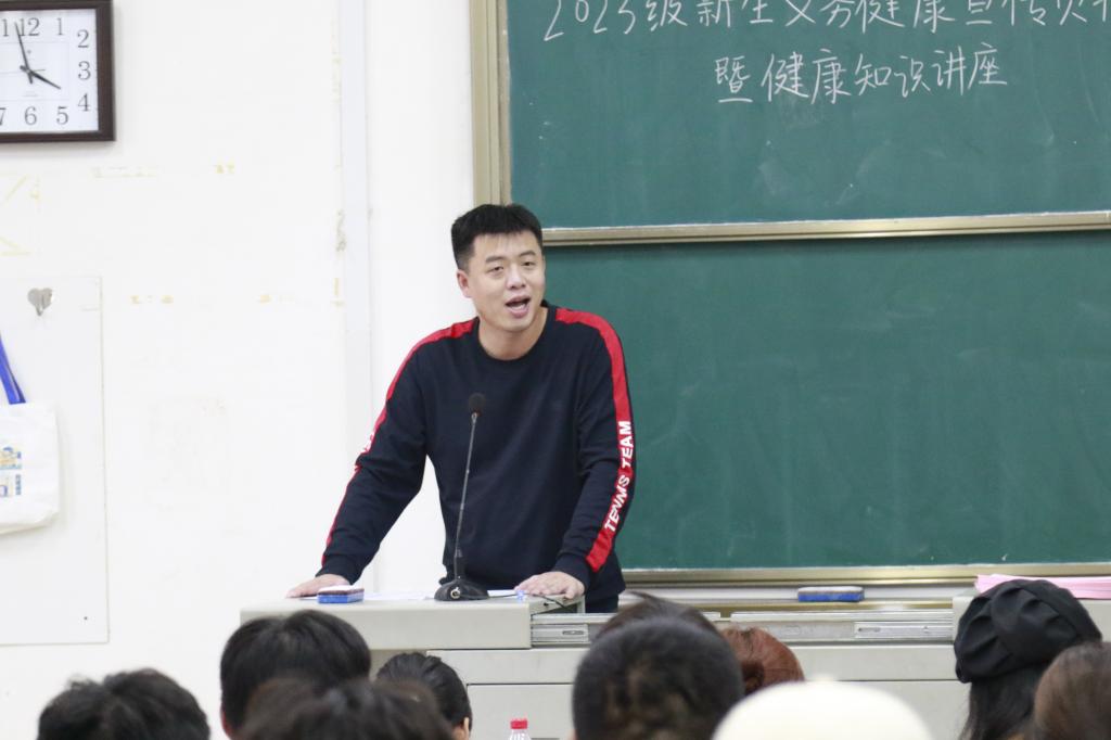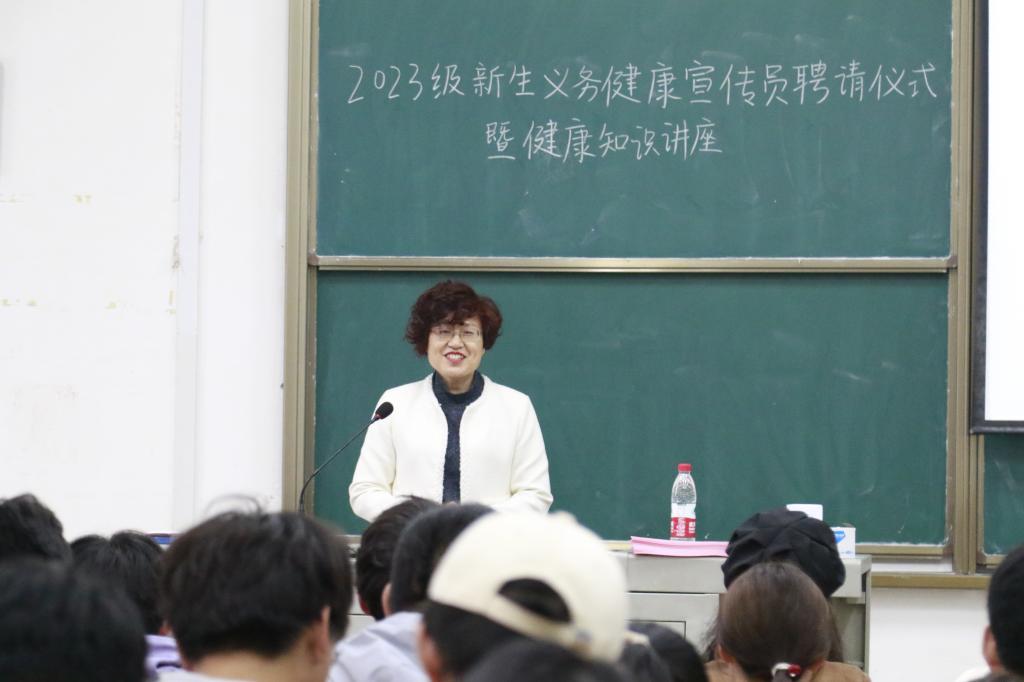 聘任仪式后,曾祥英从传染病防治、应急救护、医疗保障与就医指导三个方面向同学们讲解健康知识。她以新冠、流感、诺如等常见传染病毒为例向同学们讲解防控手段与经验,并向同学们讲授急救知识如CPR(心肺复苏术)的注意事项。同学们认真聆听并做好笔记。最后,杜亚坦布置了疫苗接种的相关工作,呼吁同学们做自己健康的第一负责人,降低疾病风险,拥抱灿烂人生。