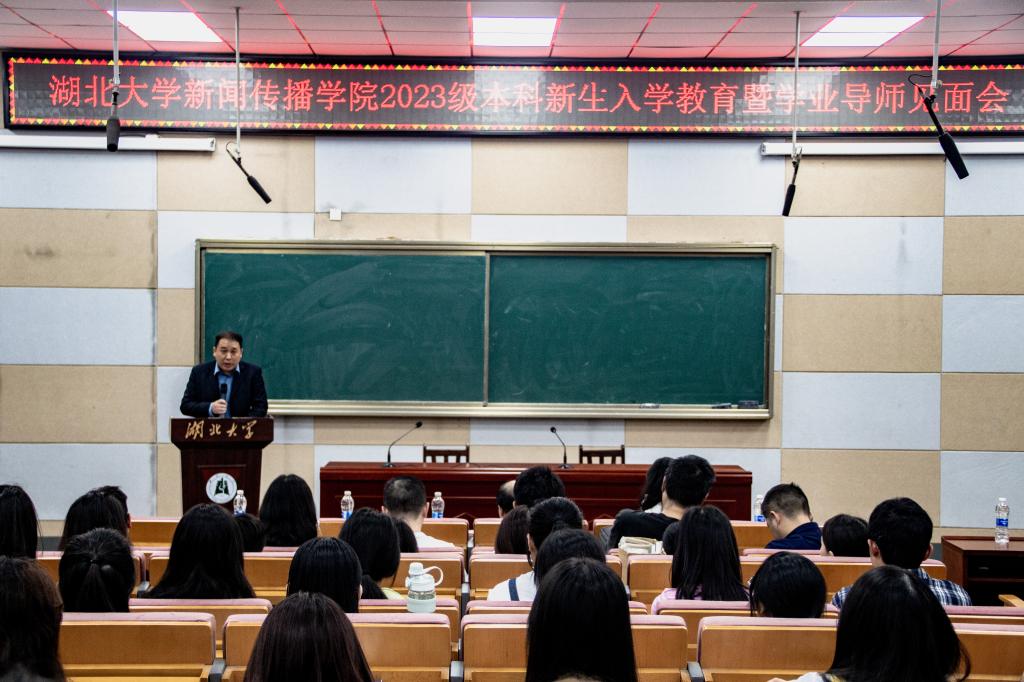 11月2日上午,新闻传播学院2023级本科新生入学教育暨学业导师见面会在阳逻校区B300顺利召开。新闻传播学院院长聂远征、党委副书记李瑶曦、副院长黎明、副院长张帆、各专业负责人、学业导师、辅导员罗成辉及新闻传播学院2023级全体本科生参加见面会。会议由李瑶曦主持。