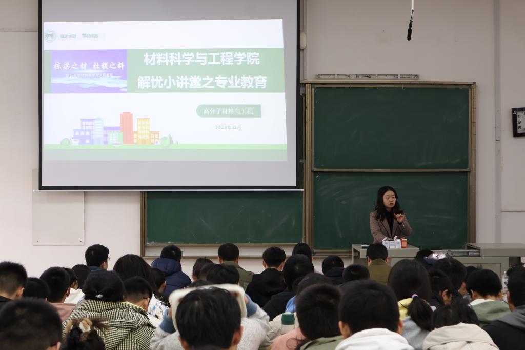 “去年,我们专业已经通过了工程教育认证。”尤俊以高分子材料与工程的历史沿革为引,向学生们介绍了高分子材料与工程系的培养方案,包括培养目标、课程体系和教学大纲等内容。他强调当代大学生不仅要成为钻研学术的专业型人才,还要做一个五育并举的综合型高素质人才。他建议,要趁早明确学习目标,寻找适合自己的学习方法,努力提升自学能力。