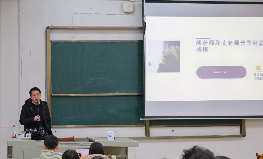 艾麦提江则从教师职业的八大人生意义入手,和同学们分享了自己的求学和求职经历,讲述了论文的写作要点、科研资源平台的利用方式以及竞赛申报建议,他还展示了往届学生的学习成果,鼓励同学们坚定从教信念,在学业上奋勇争先。