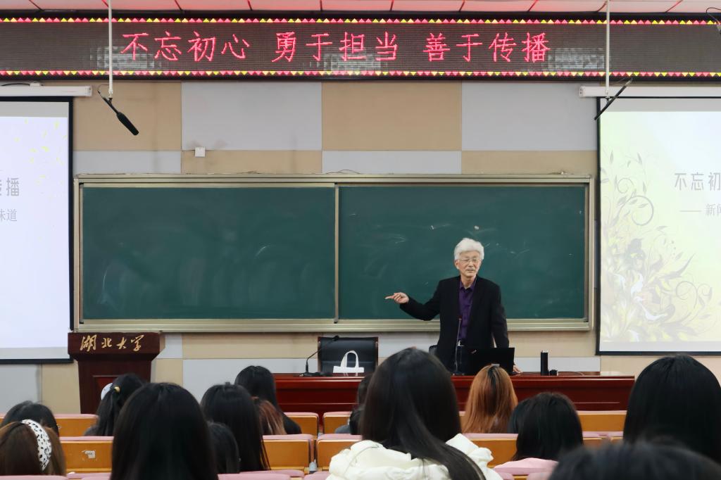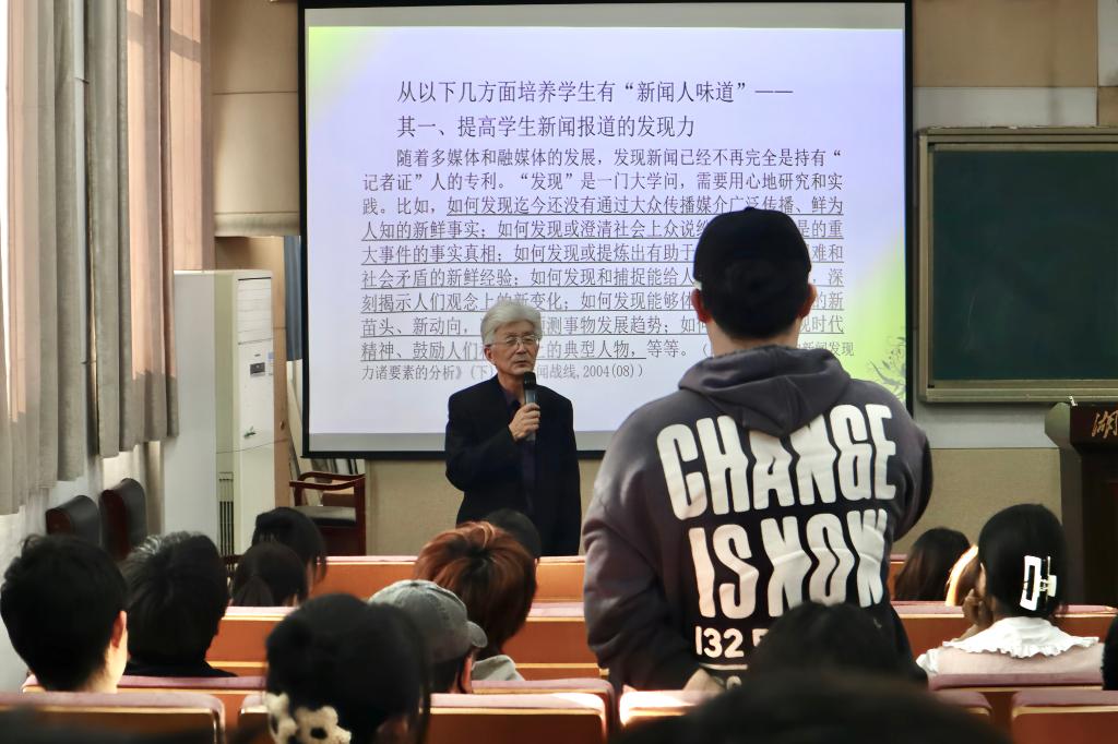 3月14日下午,华中科技大学新闻与信息传播学院教授、1982级政治教育专业校友赵振宇应邀回访母校,在问津楼B300为我院学生做题为“新闻学院培养学生当有新闻人的味道”的讲座,讲座由新闻传播学院副院长张帆主持,2023级新闻传播专业学生参加讲座。
