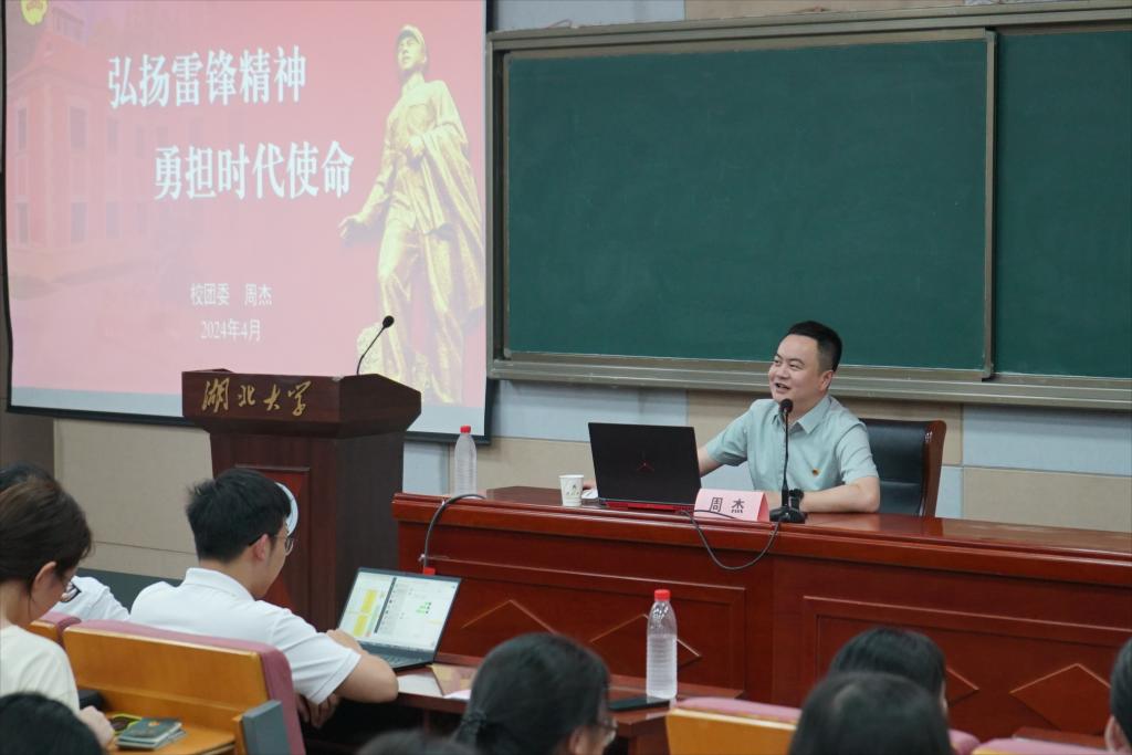 入团仪式在《光荣啊,中国共青团》的旋律中落下帷幕。仪式结束后,周杰以“弘扬雷锋精神,勇担时代使命”为主题作辅导报告,他带领学生回顾了习近平总书记对深入开展学雷锋活动作出的重要指示,并从“文明赓续”“微光如炬”“星火燎原”三个方面讲述了雷锋精神的发展、继承、弘扬,教导学生深刻把握雷锋精神的时代内涵,为全面建设社会主义现代化国家、全面推进中华民族伟大复兴凝聚力量。