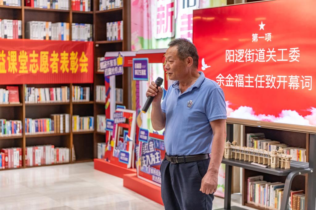 随后,若城社区星火周末公益课堂志愿者表彰仪式隆重举行。阳逻街道关工委主任余金福和秘书长洪志平、若城社区党支部书记程秋珍、我院学工党支部副书记程一、若城社区学生代表、星火青年先锋队代表等出席本次表彰仪式。仪式由星火青年先锋队队员张亚轩主持。