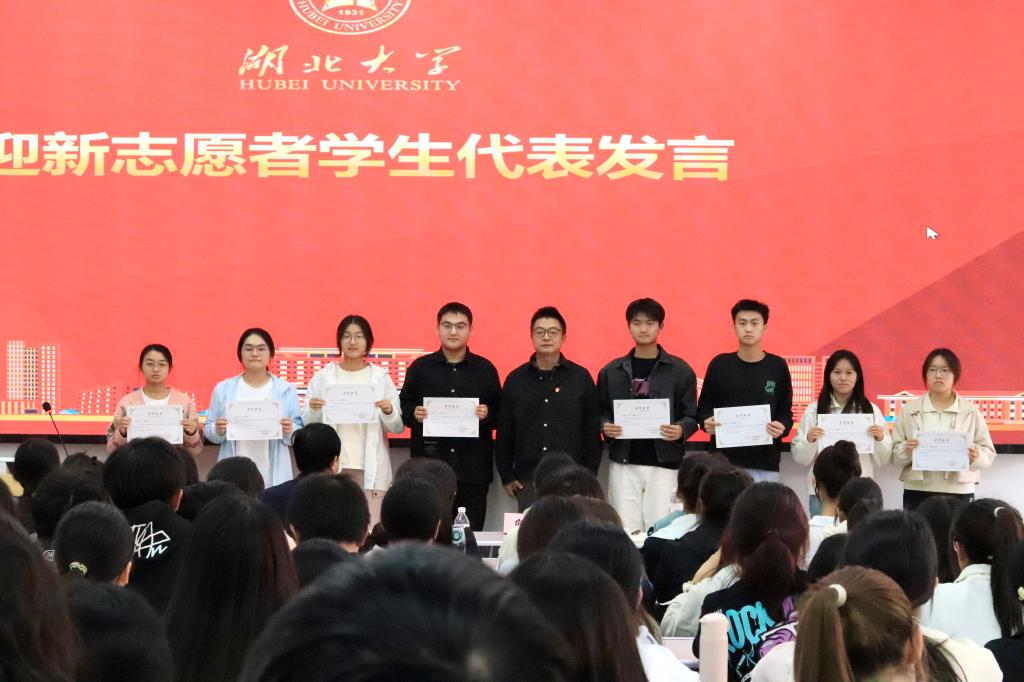 会上,邓玉红宣读2024级迎新志愿者表彰文件,对606名迎新志愿者给予表彰。向杨为迎新志愿者代表颁发志愿者服务证书,表彰他们在迎新活动中的辛勤付出和无私奉献。