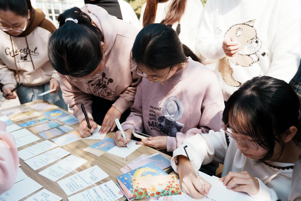 “我在明信片上写了《茶人三部曲》里的一段文字,想通过这种方式让更多同学了解中华茶文化的魅力。”2024级播音与主持艺术专业学生刘芯仪说。交换明信片后,她收到的明信片上恰好写有关于她所喜爱的运动员的文段,这让她倍感惊喜和幸运:“我深深感受到了这次活动传递的温暖和力量。”