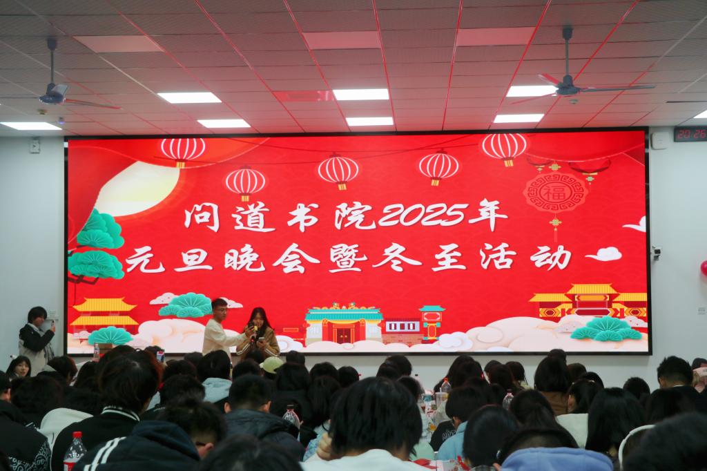 12月20日晚,通识教育学院问道书院元旦晚会暨冬至活动在问津楼B300举行,书院辅导员张文婷、廖紫冰、杜强,259名问道学生热情参与,现场气氛热烈非凡,欢声笑语不断。