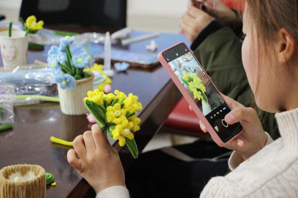 “当投入到扭扭棒的制作中时,我觉得心情变得越来越平静。我想把我制作的扭扭棒盆栽送给我的好朋友,与她一起分享这份快乐。”2024级电子信息类专业学生文欣然笑道。