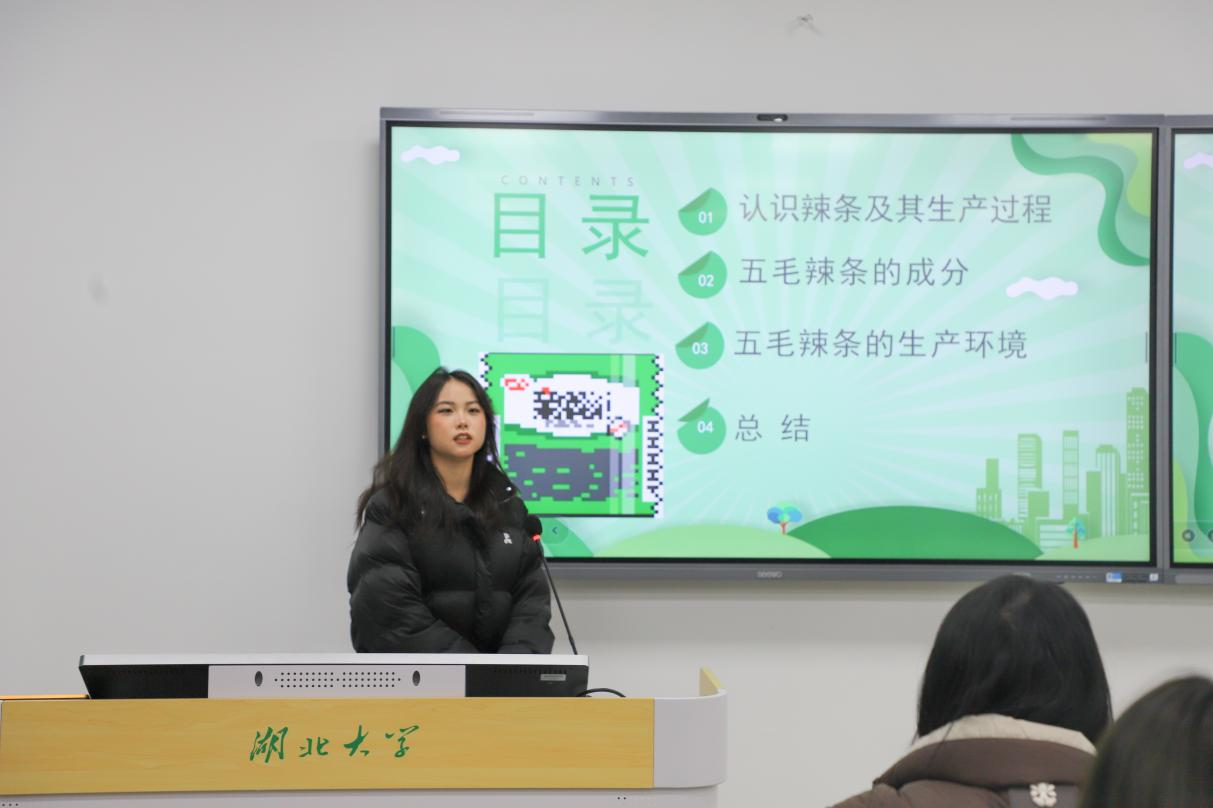 本次活动共有9个参赛小组进行科普展示,他们围绕日常食品问题,结合专业知识与食品安全法案,以通俗易懂的方式向观众普及了食品安全知识。“外卖食品真的安全吗?”“五毛辣条到底能不能吃?”等一系列贴近日常生活的科普,引起了同学们的强烈共鸣,现场互动氛围十分热烈。