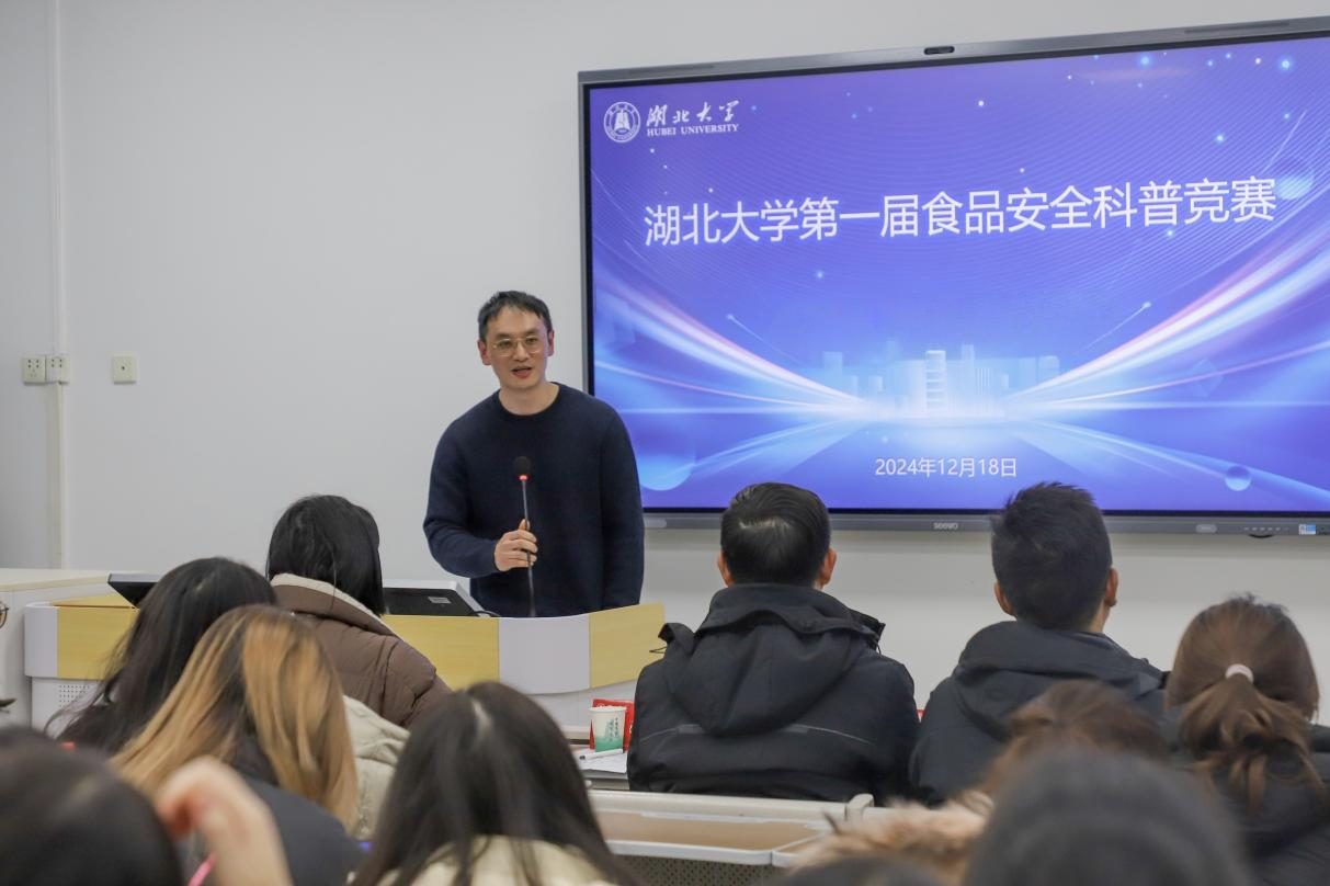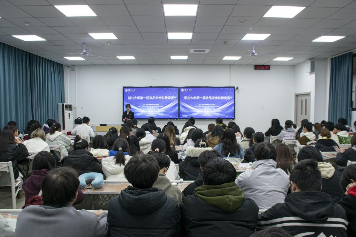 12月18日晚,湖北大学第一届食品安全科普竞赛在阳逻校区成功举办。本次活动由湖北大学科学技术协会主办,学生工作部(处)指导,健康科学与工程学院承办。湖北大学学生工作部(处)副部(处)长、通识教育学院党委副书记向杨,科学技术发展研究院副院长陈洪建,健康科学与工程学院党委林二友书记、刘颖副书记作为评委嘉宾出席活动。健康科学与工程学院2024级学生代表观赛。