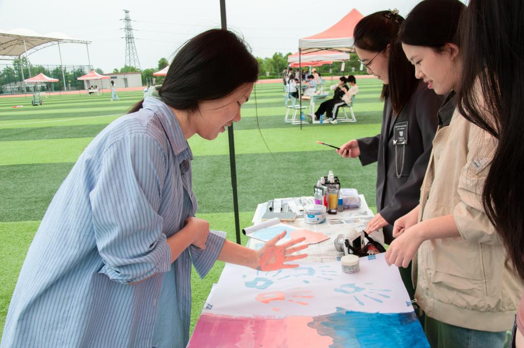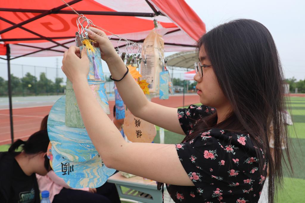 在“不‘漆’而遇,初春染‘扇’”的活动现场,同学们挑选心仪的扇面,或写下激励自己的话语,或摘抄喜爱的诗句名言,用染料制作古风环保扇。看着自己完成的紫色漆扇,2024级化学类专业学生周曦满意地笑了:“我准备把这个漆扇作为生日礼物送给我朋友,希望能把我制作过程中的快乐情绪也传递给她。”