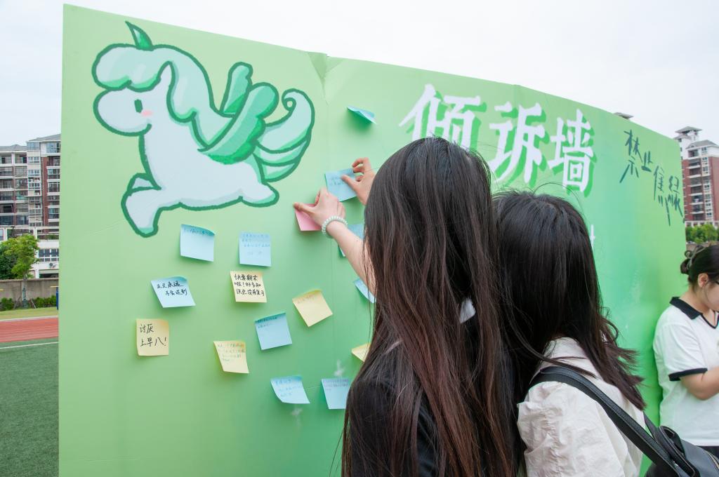 下午的志愿集市活动紧扣“志愿和环保”的主题,设置十大特色摊位,涵盖环保、公益、文化等多个领域。“智慧闯关”巧妙地将环保知识与趣味答题相结合;“创意拼贴诗工坊”“书香书签坊”等手工体验区,让同学们自己动手,制作富有诗意美感的作品;“暖心解忧墙”“解忧杂货铺”通过书写便签的形式,传递温暖与正能量。