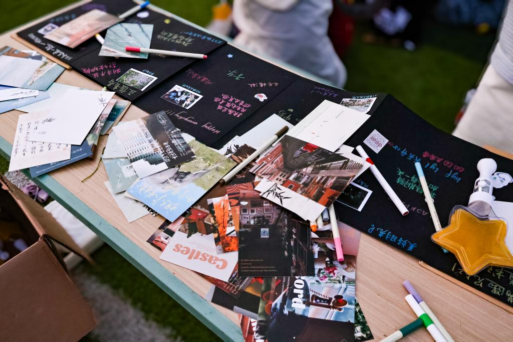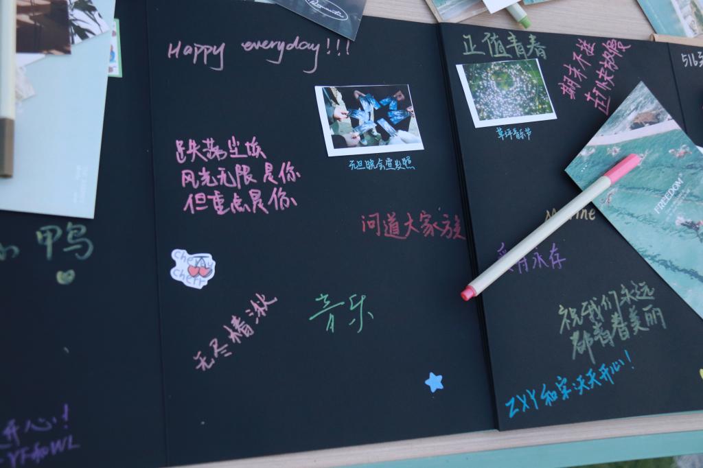 音乐会开始前,现场设置了丰富的互动环节。师生们在签名板上留下真挚祝福,并互相交换明信片,用文字传递温暖情谊。活动特别设计的手风琴造型立体纪念册,更是成为了师生共同书写感悟、留存书院记忆的独特载体。